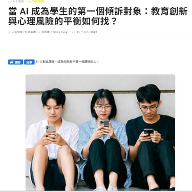 🔍 當 AI 成為青少年的「第一個傾訴對象」—— 我們是否已為下一代準備好足夠的安全與支援?